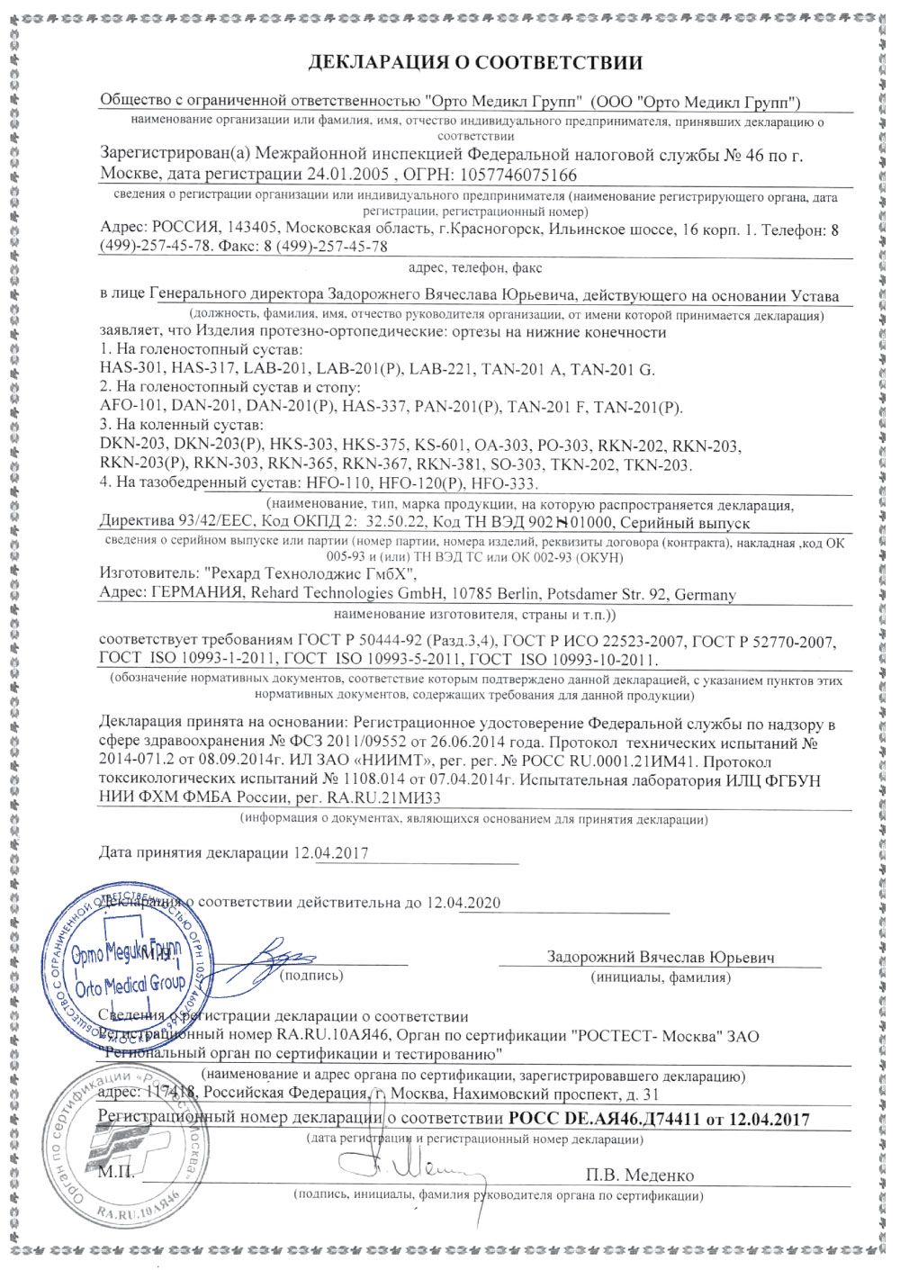 Ортез состоит из металлических шин с шарнирами, оснащенными регуляторами объема движений (возможность регулирования по 10 градусов), сапожка-манжеты на голень и стопу и подошвы с перекатом.